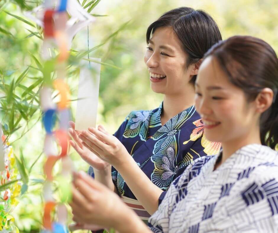 On Tanabata, people write wishes on tanzaku (small pieces of paper).