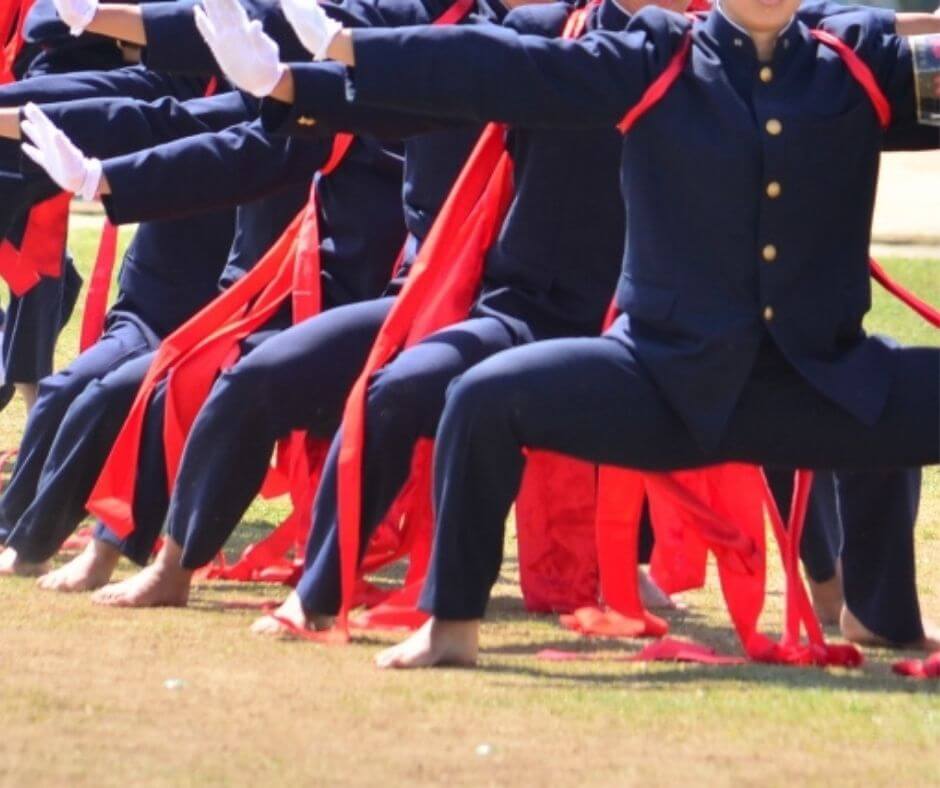 そして面白いのは「応援団」!学校のユニフォームを着て、ハチマキをして、大きな声でチームを応援します!実は私も学生の時応援団のメンバーでした😆