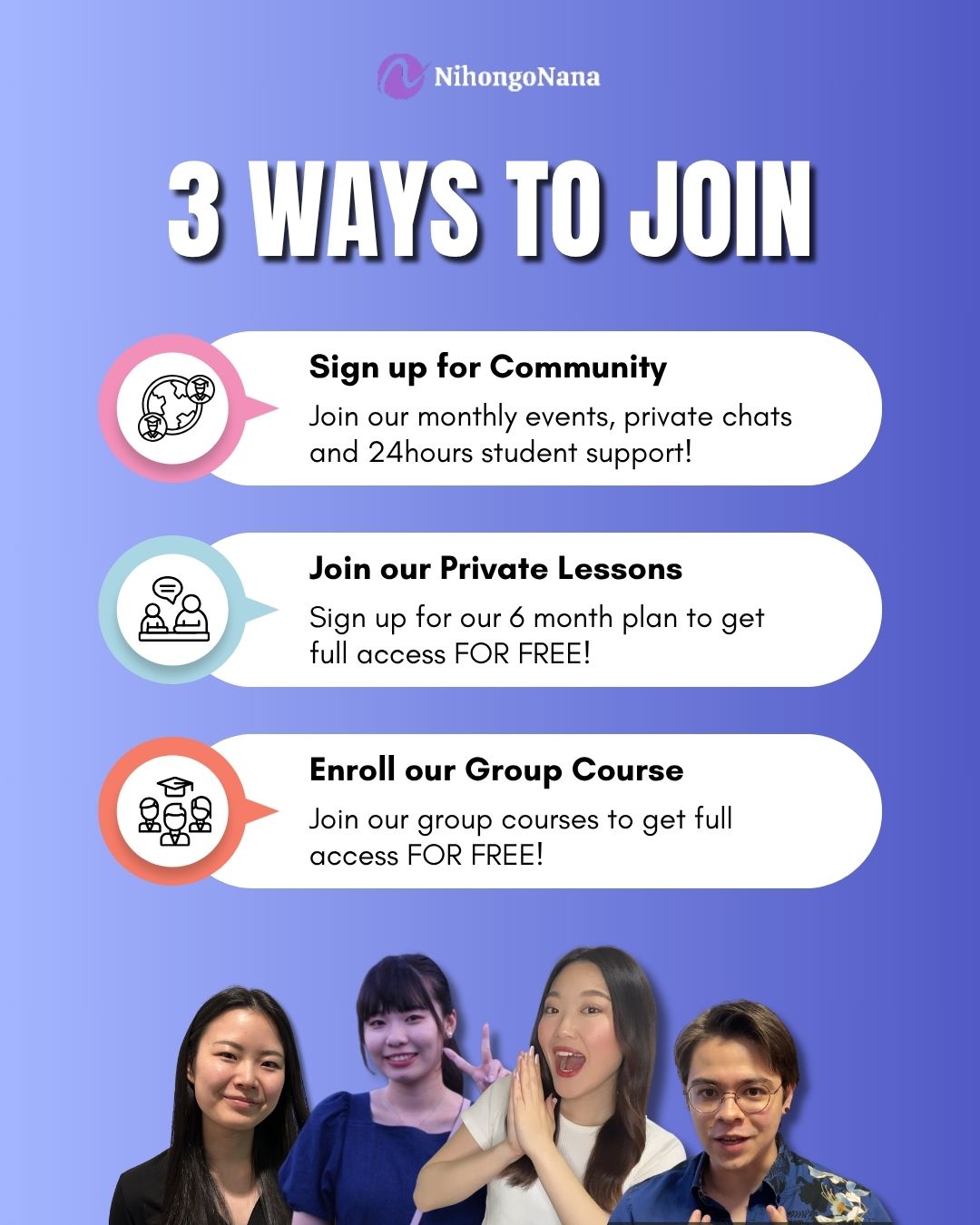 Join our Community to get more personal support and deeper connection with NihongoNana. Interact with fellow learners, access exclusive content, and enhance your Japanese language journey.
